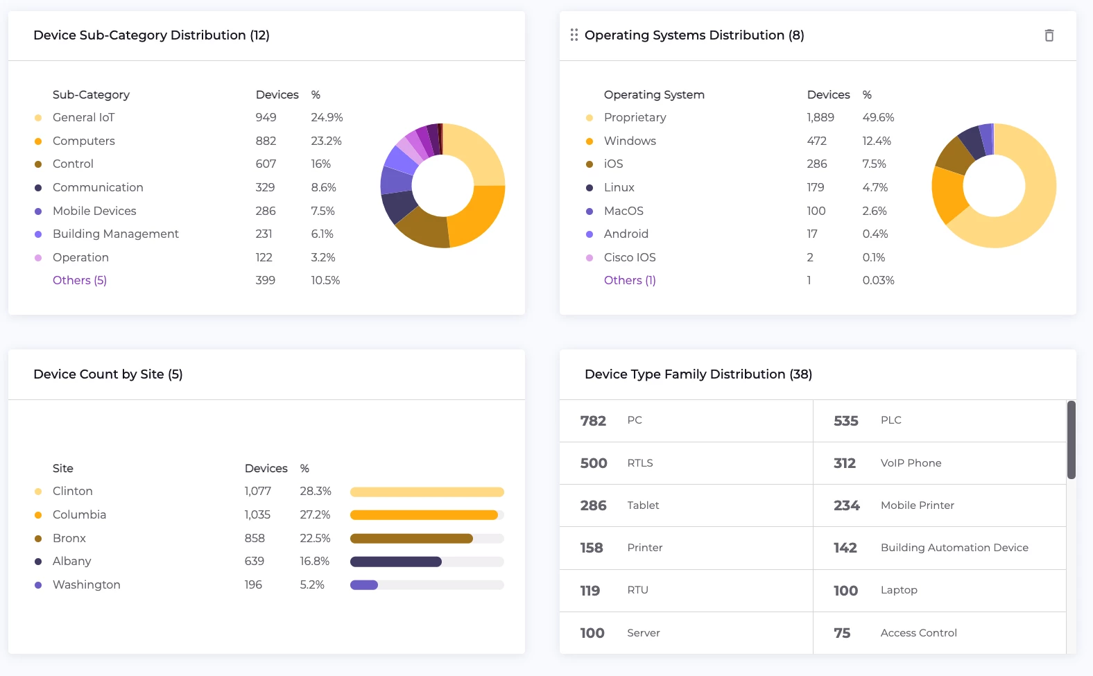 Asset inventory is the backbone of cyber resilience. We take this seriously, settling for no less than a complete, always up-to-date inventory of all your assets across the XIoT — including each asset’s full scope of identifiers and behavioral details. Achieving this visibility on your cyber resilience journey with Claroty typically entails: