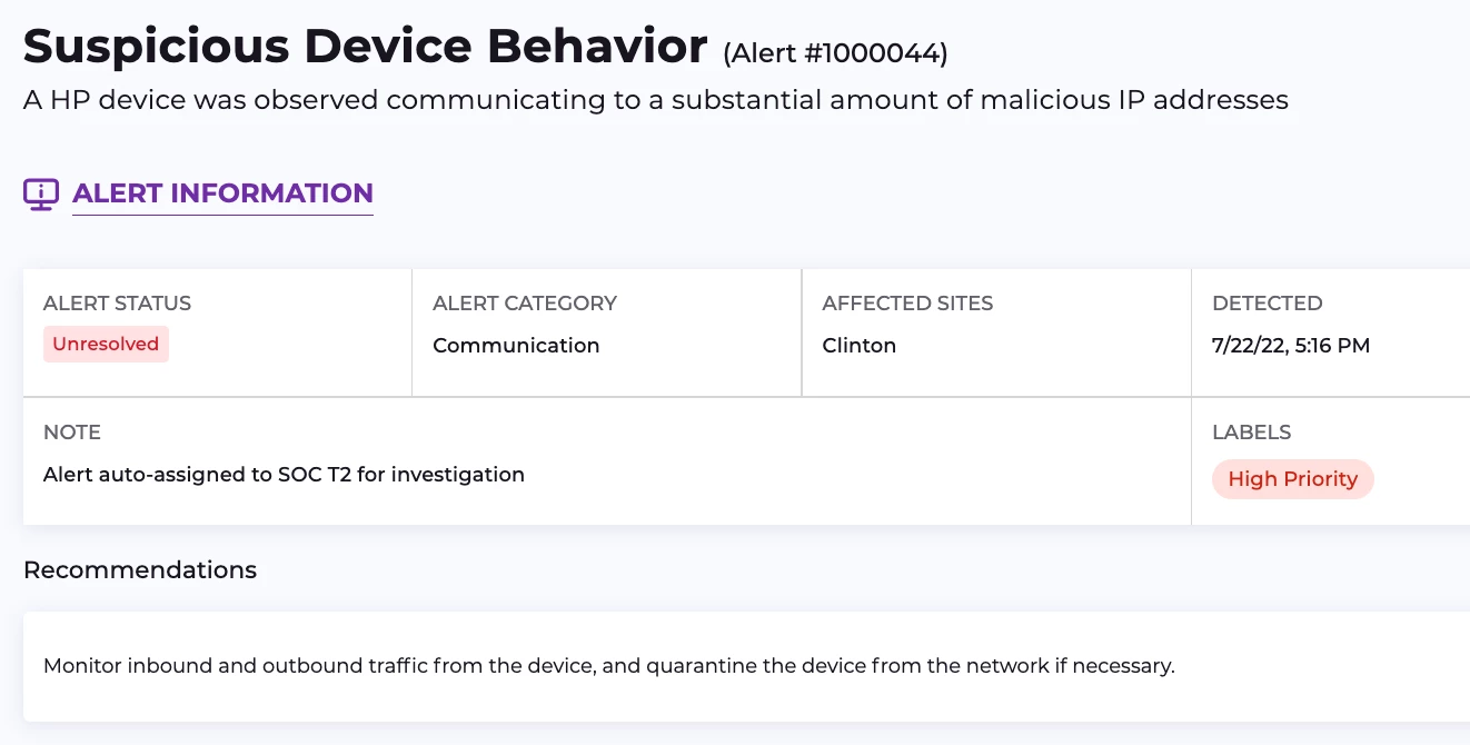 As a key indicator of attack vectors in OT environments, communication with malicious entities is identified and blocked by our platform to boost your cyber resilience.