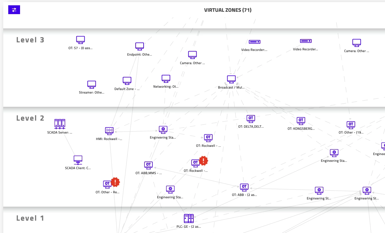 The extensive visibility CTD provides enables it to automatically map and virtually segment networks into Virtual Zones, or logical groups of assets that communicate with one another under normal circumstances. These Virtual Zones enable further features such as empowering CTD’s threat detection capabilities with cross-zone communication violation alerts and integrations with existing firewall and NAC solutions to enforce policy-based segmentation.