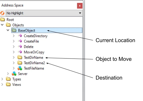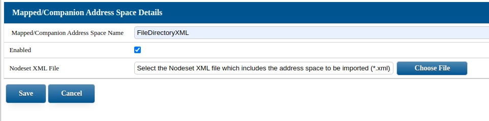 Using the Load Mapped/Companion Address Space functionality of the server web interface, we were able to add a namespace with FileDirectory objects in namespace 1. But since the FileDirectory methods are defined in namespace 0, we were not able to reference the function calls from namespace 1 to the relevant function in namespace 0.