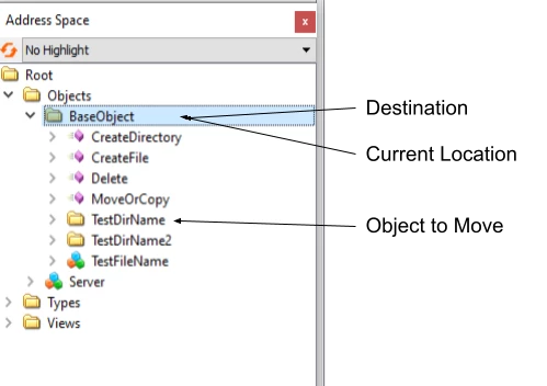 FileDirectory containing two other FileDirectories: In this configuration we can use the “move” primitive.