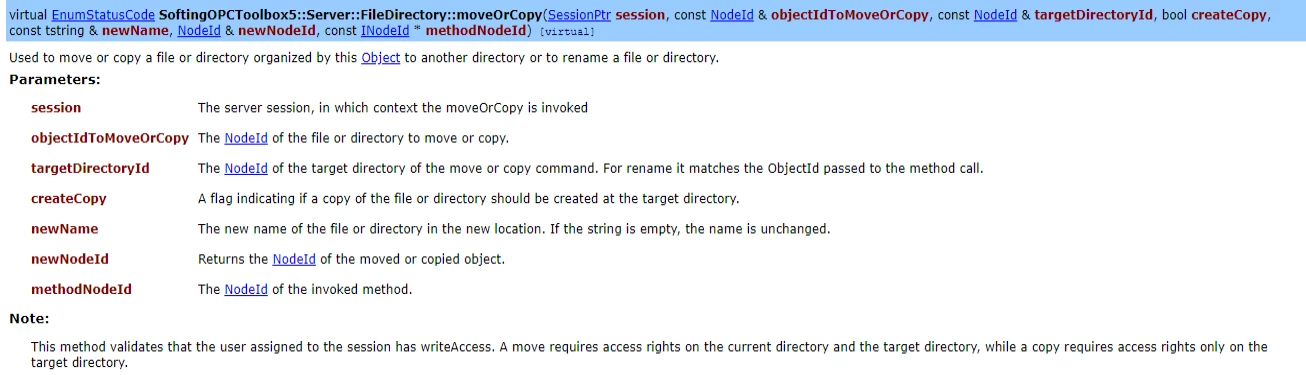 FileDirectory objects usually require that the link between the OPC UA object and the filesystem path would be done by the server code. This means the server using the Softing SDK needs to implement the connection “hard-coded” in their code.